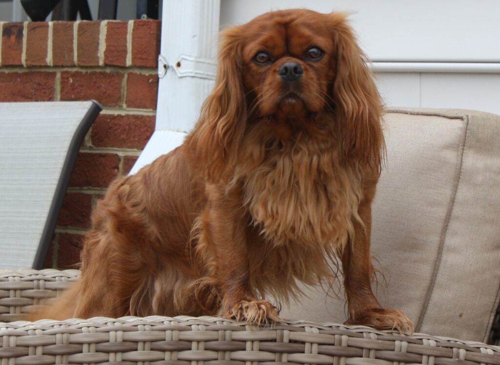 Toby is a pure ruby cavalier born July 2021 and is AKC registered, DNA clear, and healthy with championship bloodlines. He has proven himself on multiple litters producing beautiful, well-balanced puppies. Nicknamed “lizard’ he is obsessed with showing his affection with kisses. He is a beautiful ruby male that enjoys running or just laying down to rest on your lap or next to you.