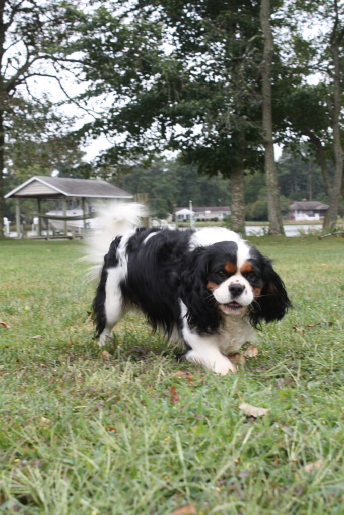 Brodie is a tricolor cavalier born October 2023 and is AKC registered, DNA clear, and healthy with championship bloodlines. He is such a sweet boy, tall and long that he forgets he is not a little puppy anymore. Beautiful coat, coloring, and disposition he has fathered multiple litters producing happy, healthy puppies.