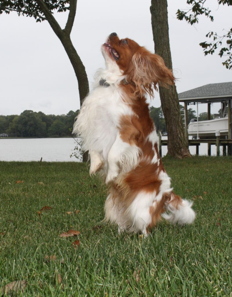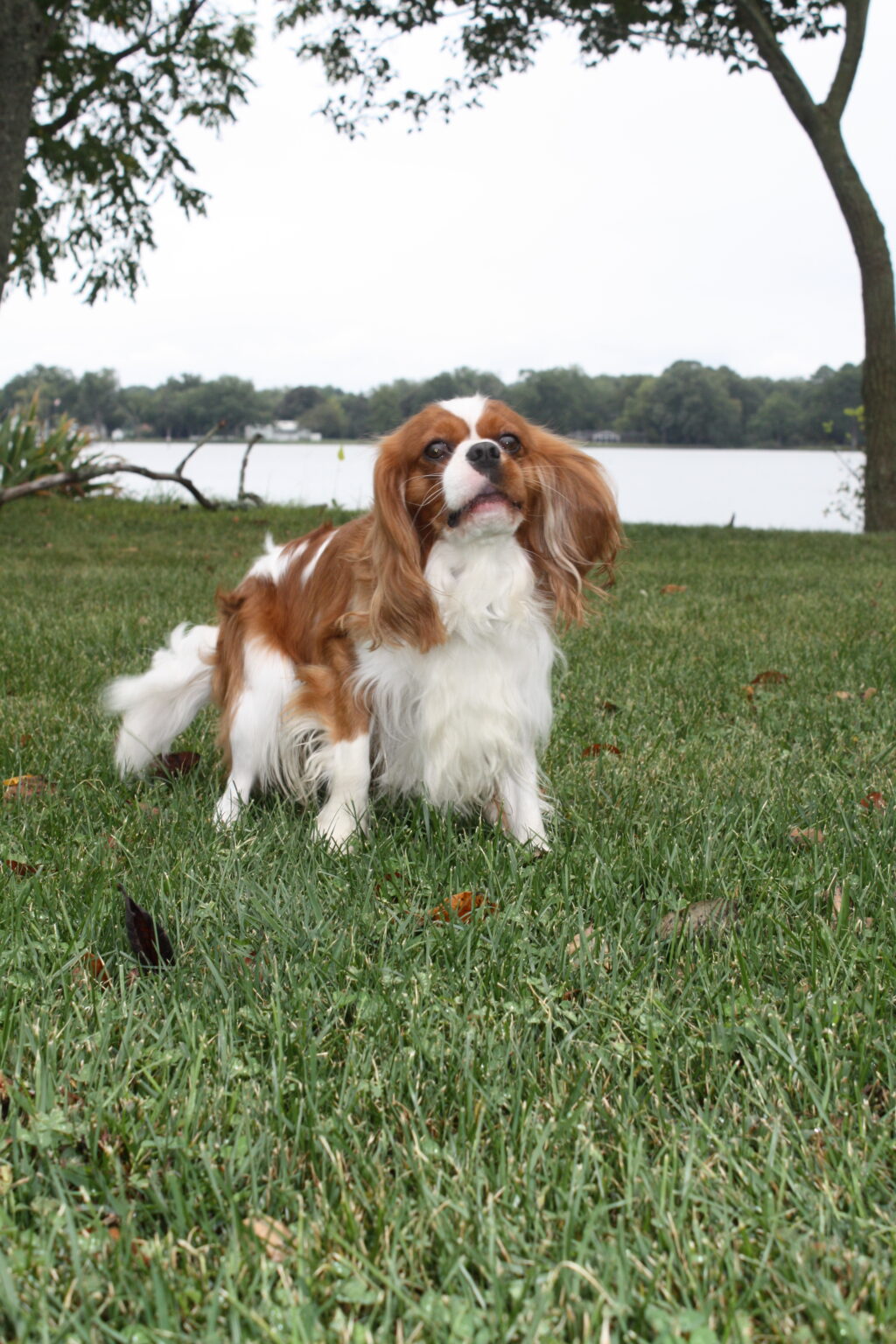 Ruger is a beautiful Blenheim cavalier born April 2022 and is AKC registered, DNA clear, and healthy holding both championship and Hungarian paternal blood lines. Ruger is a sweet boy that just loves to please you. He runs and plays but really loves to be up close to you to share the love. He has successfully fathered multiple litters producing happy, healthy, and beautiful puppies.