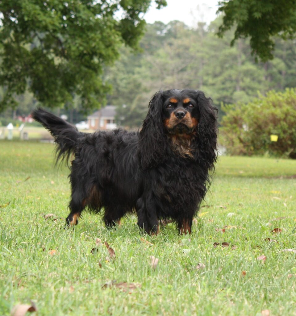 Remy is a pure black and tan cavalier born September 2022 and is AKC registered, DNA clear, and healthy with championship bloodlines. Full of energy, loving disposition and a long beautiful coat he “flows” into the room. He loves to run and play but is not shy about sharing the couch with you.