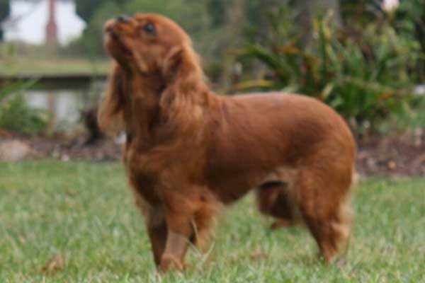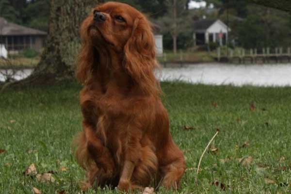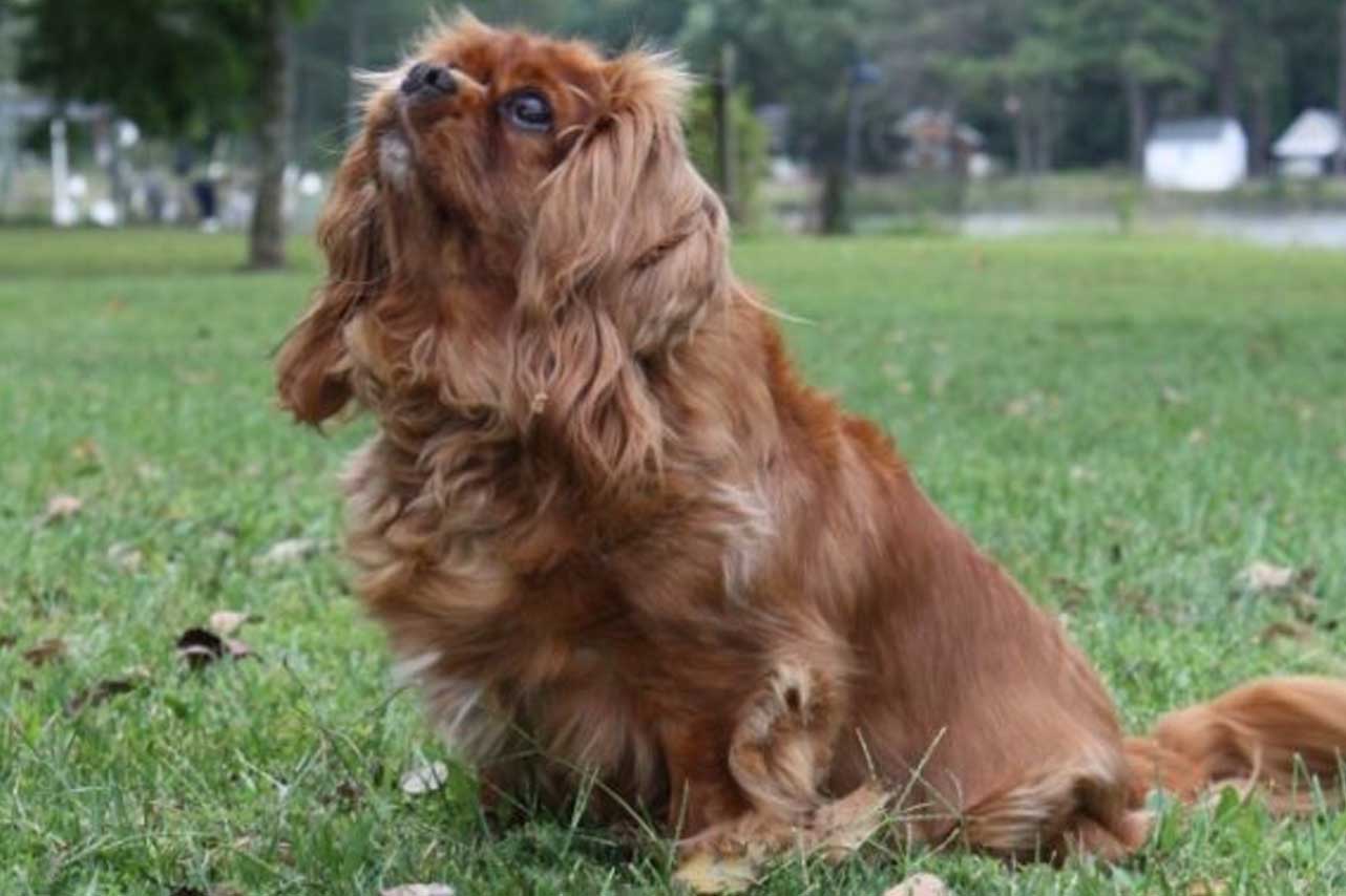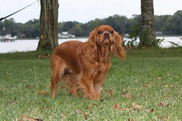 Marlee is a pure ruby cavalier born July 2019 and is AKC registered, DNA clear, healthy with championship bloodlines. She retired in 2024 having only one litter of beautiful puppies lovingly cared for by mom. Today she plays the role of auntie. Marlee has always been a little slower just enjoying sitting outside on the grass watching anything and everything. Marlee was the first of our cavaliers to give a true hug. Stands on our laps and puts a paw on both sides of our necks!